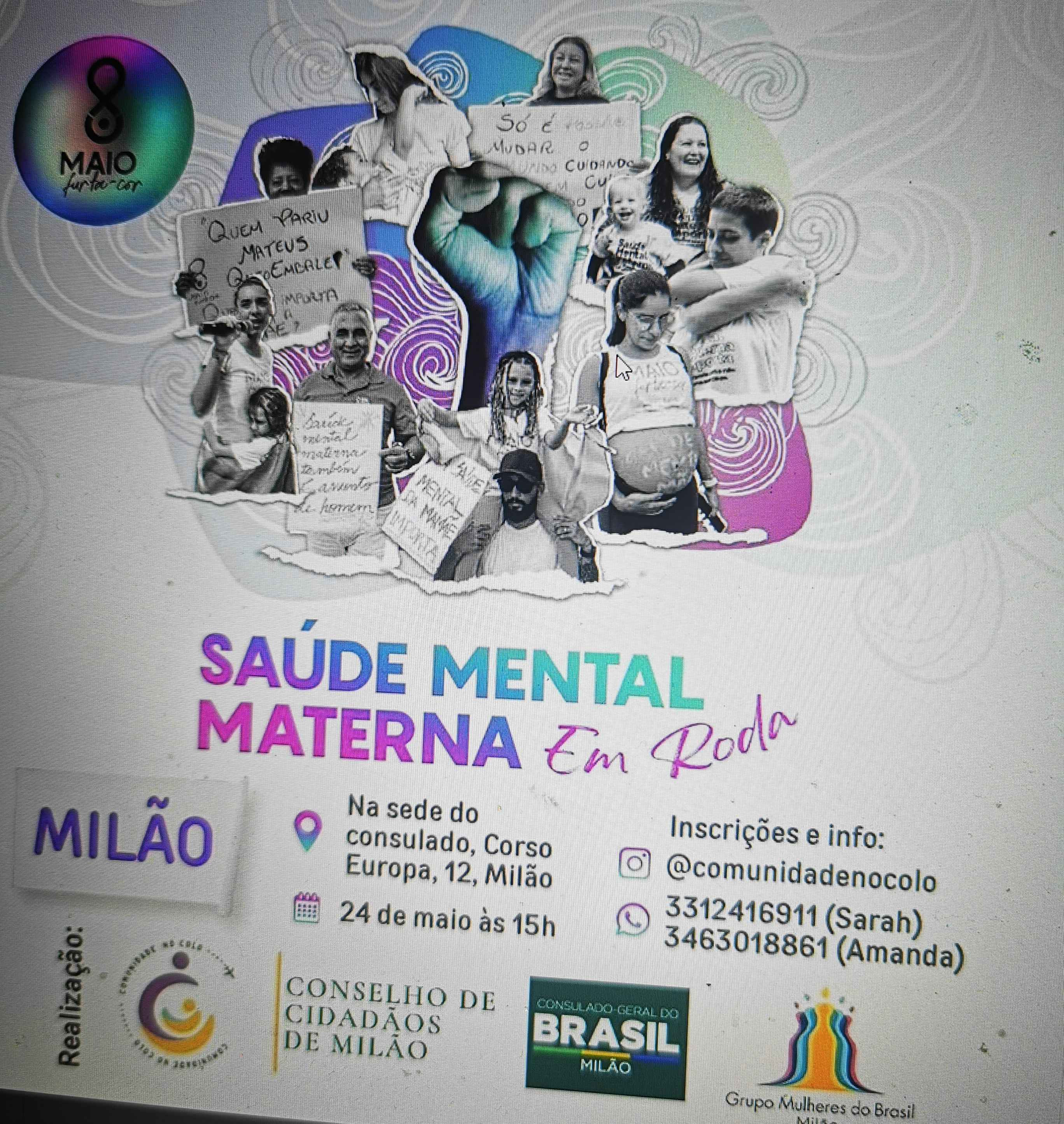A Comunidade “No Colo” promove na Itália a campanha “Maio Furta Cor” que visa sensibilizar sobre a saúde mental materna, promover o diálogo e a prevenção de questões psico-físicas neste período da maternidade. Hoje as 15 horas vai rolar um evento em Corso Europa 12 para falar sobre esse assunto.